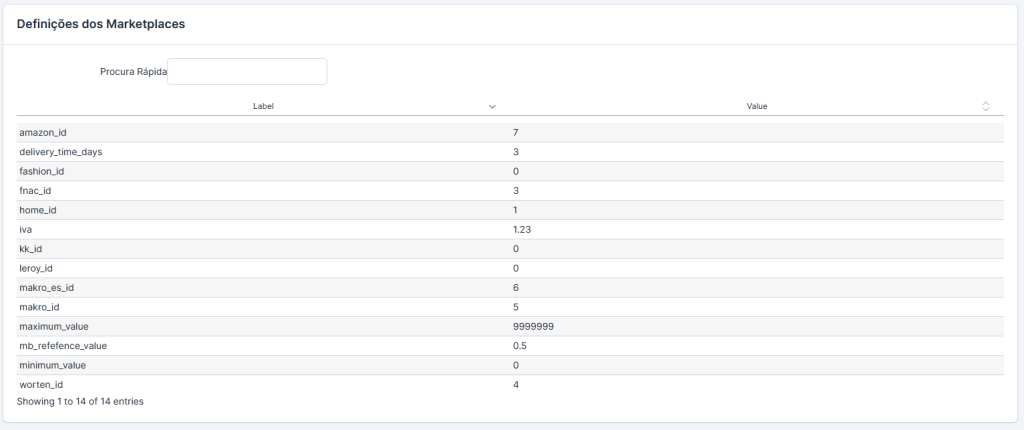 Este módulo centraliza as configurações base utilizadas em várias operações com marketplaces — incluindo parâmetros internos, identificadores de plataformas, valores mínimos/máximos, e ajustes de lógica de negócio.