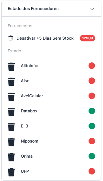 - ❌ Vermelho indica fornecedor sem stock há mais de 5 dias.
